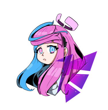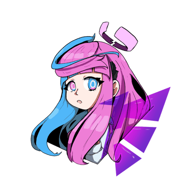 Cabelos longos em tons de rosa e azul — reflexo da dualidade entre inocência e poder.